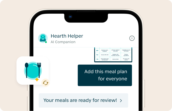 Add meals from your phone and have them come to life on your Hearth Display. Keep your family in sync no matter where you are.