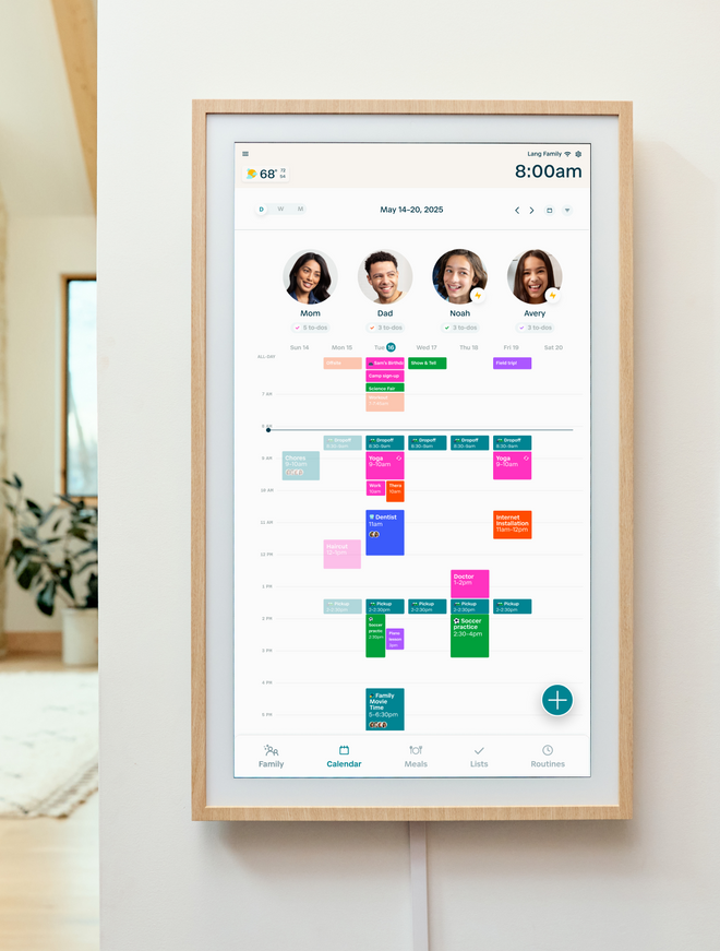 Remembering appointments. Making grocery lists. Reminding the kids to clean up. Running a household comes with a burden of invisible labor that typically falls on one parent, leading to frustration and burnout — but now it doesn’t have to. Because with Hearth Display, family organization becomes an easier, shared responsibility for everyone in your home. Instead of messy whiteboards and reminders on your phone, you get a single, sleek display with everything you need, designed for the whole family to use.